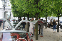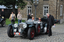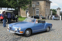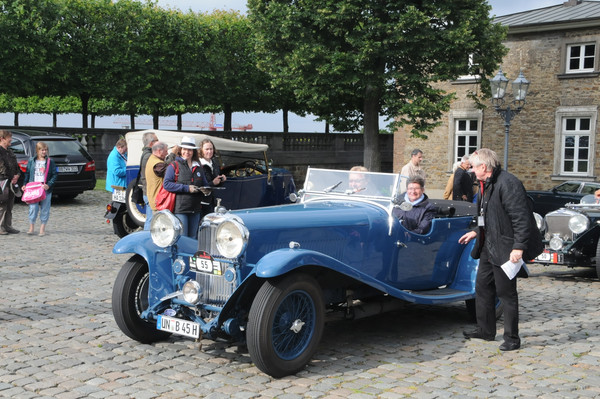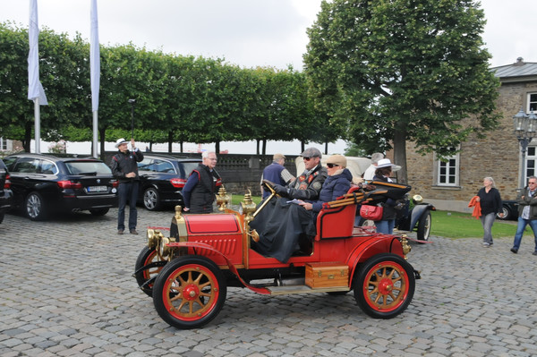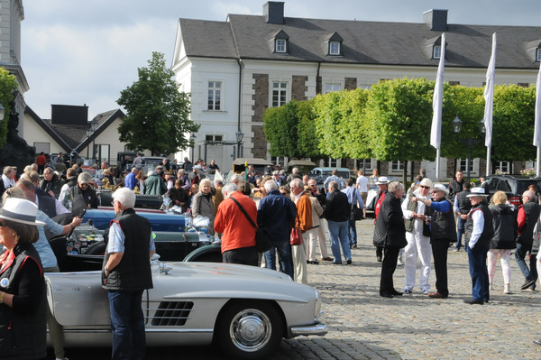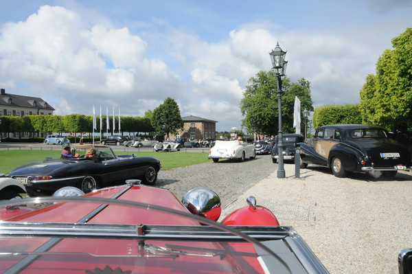 Eine Ausfahrt ist zwar lustig, aber kein Spaß. Ab 7 Uhr fuhren wieder die Shuttles von den Hotels zur Messe. Die erste knapp 45-minütige Etappe führte die Teilnehmer ins Schloss Bensberg, wo die Fahrzeuge gut eine Stunde ausgestellt und präsentiert wurden. Die heutige Etappe führte durch das Bergische Land, ebenfalls eine wunderschöne Landschaft mit diversen Weiden, die von vielen Pferden, Kühen, Schafen und Ziegen bevölkert waren. Oldtimer schienen keine Gefahr und auch nur selten vorbei zu kommen. Die Tiere waren jedenfalls alle sehr interessiert, was da in ihrem Revier passierte.