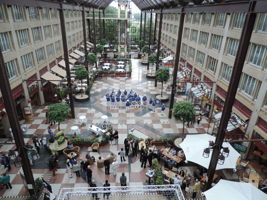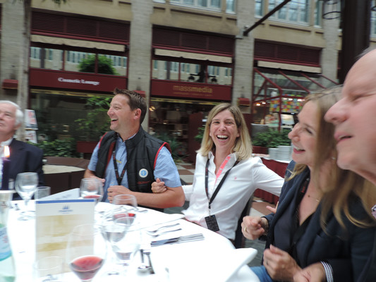 Die Nachmittagsroute führte die Teilnehmer wieder nach Köln. Wieder im Hotel angekommen, traf man sich gegen 18:30 in der Lobby. Präsident Werner Krupp und seine Leute hatten auch hier wieder etwas besonderes arrangiert, womit sich die meisten Teilnehmer vmtl. bisher eher selten bis gar nicht konfrontiert sahen. Der Tambour- und Hornisten Club Köln Kalk Humboldt von 1924 e.V. Spielmannszug spielte auf. Steffi K., die ein Zimmer zum Innenhof hatte und ein wenig spät dran war und noch im Bad Stand, hatte den Verdacht, dass der Zug direkt durch ihr Zimmer marschierte.