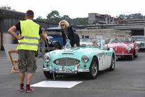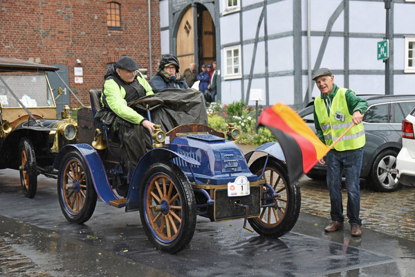 War man mit dem guten Wetter am Anreisetag verwöhnt, so versprach die Vorhersage für den Freitag einige Überraschungen und 5 Minuten vor dem geplanten Start schüttete es schlagartig wie aus Kübeln. Bei den Teams mit Fahrzeugen ohne brauchbaren Wetterschutz verdunkelte sich die Stimmung wie der bedrohlich schwarze Gewitterhimmel. An eine Fahrt unter diesen Bedingungen war überhaupt nicht zu denken. Erst mit einer Stunde Verzögerung konnte Petra-Maria von Wahlberg, bei der „Autostadt“ verantwortlich für Messen und Präsentationen, die Startflagge am 'Erlebnismuseum Salzwelten', in der Ortsmitte von Bad Sassendorf, schwenken. Moderiert wurde das Geschehen von dem ASC Mitglied Johannes Hübner, der wieder einmal auf seine charmante Art und mit beeindruckendem Fachwissen die Anwesenden begeisterte.