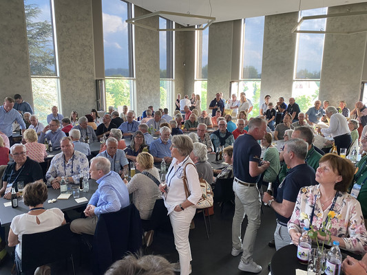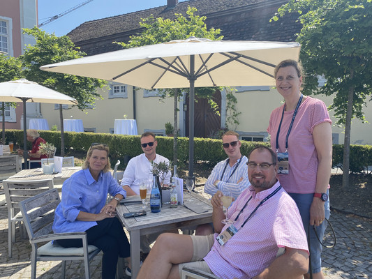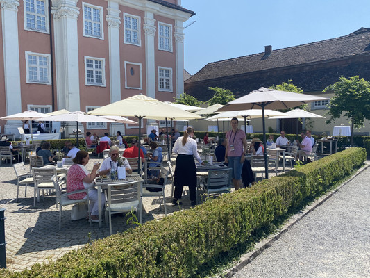 Das Abendessen fand direkt am Bodensee auf der Terrasse des Mettnau-Cafe in Radolfzell statt, wohin die Teilnehmer mit Bussen gefahren.