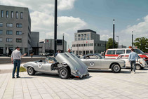 Fahrzeuge in kleinen Gruppen zur Central Garage nach Bad Homburg fuhren.