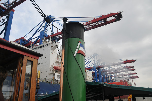 Technik pur. Stahl, Nieten, Öl und Wasserdampf. Was will man mehr. Mit einer Länge von knapp 18m und einem Tiefgang von 2,5 verdrängt der 'Tiger' 65 Bruttoregistertonnen (184m³). Die 2-Zylinder- Expansionsdampfmaschine leistet 240PS und lässt den 'Tiger' bei 130 Umdrehungen mit bis zu 9 Knoten (16 km/h) durch die Elbe pflügen.