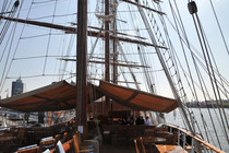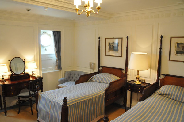 Die edlen Hölzer und die goldenen Wasserhähne in Form eines Schwanenhalses als auch die Kamine in der Bibliothek und in einer Vielzahl von Kabinen sind schon wirklich außergewöhnlich, auch wenn sie heute vielleicht nicht mehr jedermanns Geschmack treffen. Die anwesenden Segler bevorzugten allesamt die zweietagigen Offizierskabinen hinter der Brücke.