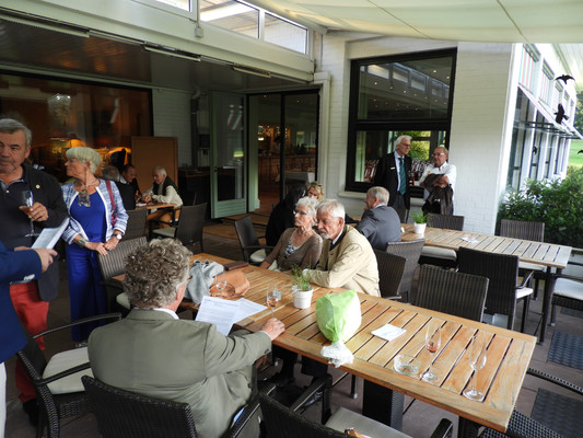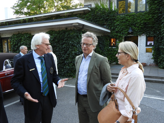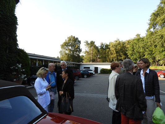 Die ersten 30 Minuten wurden mit Benzingesprächen auf dem Parkplatz verbracht, bis unser Präsident Manfred M. zum Begrüßungsdrink auf die Terrasse rief, wo jeder den tollen Blick auf das Grün genießen konnte. Das anschließende Drei-Gänge-Menü war sehr gut. Barbara spendierte allen Gästen zusätzlich zum Dessert noch Geburtstagstorte und lud anschließend alle Gäste zum Champagner-Umtrunk zu sich nach Hause ein, um nachträglich auf ihren Geburtstag anzustoßen. Es wurde wieder spät.