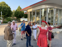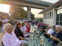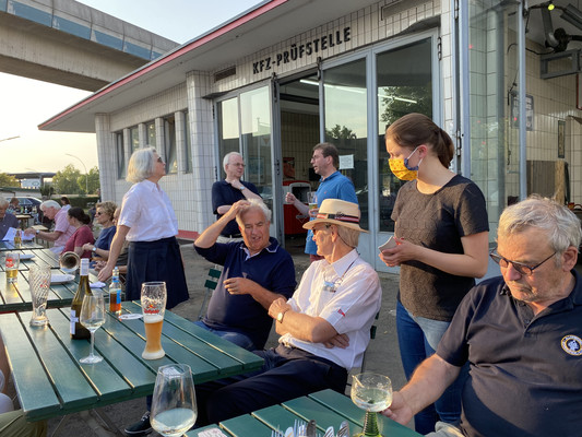 Nun hatte sich an den seit Wochen bestehenden tropischen Temperaturen entgegen angekündigten Regens dann doch nichts geändert, so dass wir mit 24 Personen draußen sitzen konnten. Es tut uns daher sehr leid, dass von unserem Sekretariat einige Absagen erteilt worden sind.