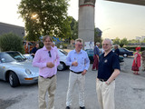 SB Rudolf E. hatte nicht nur ein gutes Essen bestellt, sondern bat mit fröhlich launischer, aber seinem Namen entsprechender 'ernst'-hafter Ankündigung zum Concours d'Elegance. Das schönste/interessanteste Auto sollte auf einem jeden in die Hand gedrückten Wahlzettel vermerkt werden. Das Kopf an Kopf Rennen machten die 'Engländer' - Bristol, Jaguar, Jensen, MG - unter sich aus. Wer wußte eigentlich, dass im Bristol und im Jensen der gleiche amerikanische Chrysler Motor seine V8 Power auf die Antriebswelle bringt? Alle Kandidaten hatten sich gleichermaßen blank poliert und in 1A Zustand präsentiert. Die Wahl fiel dann ganz knapp auf den Jensen unseres SB Klaus S. Der freute sich riesig über einen Beutel voller Geschenke.