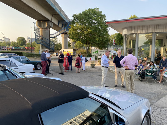 SB Rudolf E. hatte den unter normalen Umständen im Juni geplant gewesenen Clubabend an der Oldtimer-Tankstelle Brandshof dankenswerterweise noch einmal organisatorisch unter seiner Fittiche genommen. Unter Beachtung der bestehenden Hygiene- und Abstandsregeln bedeutete das allerdings, dass wir maximal 25 Personen sein durften, wenn wir uns drinnen begegnet wären.