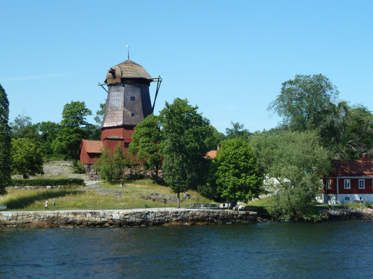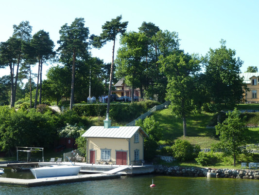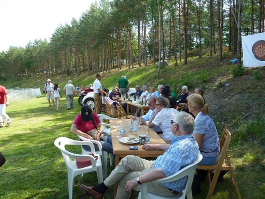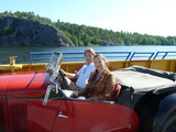 Anders Läck, Chairman des veranstaltenden Automobilhistoriska klubben lud uns zu einer beeindruckenden Dampferfahrt durch die vor Stockholm liegenden Schären ein, wir sahen das alte Fort Vaxholm und machten dann am Besitz von Anders Läck fest. Über vier Feuern drehten sich Lammbraten und es gab mehr als reichlich Wein zu trinken.
