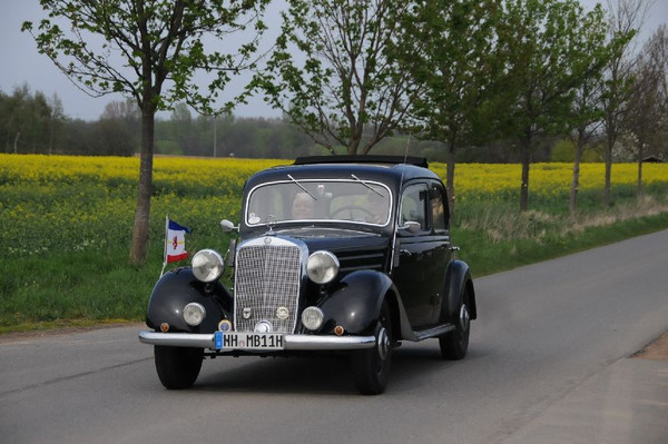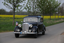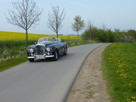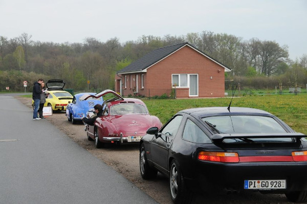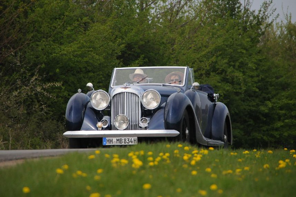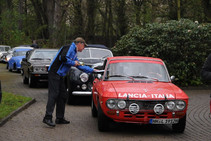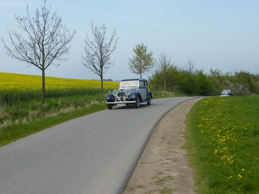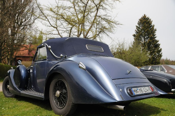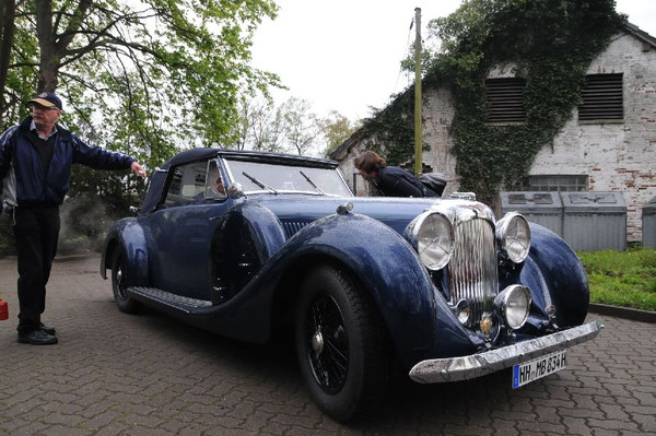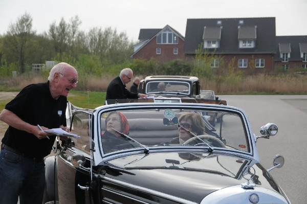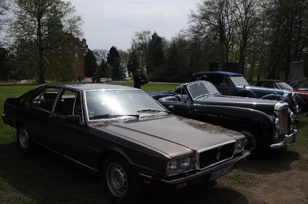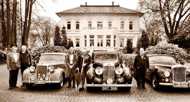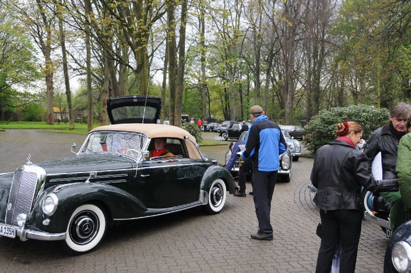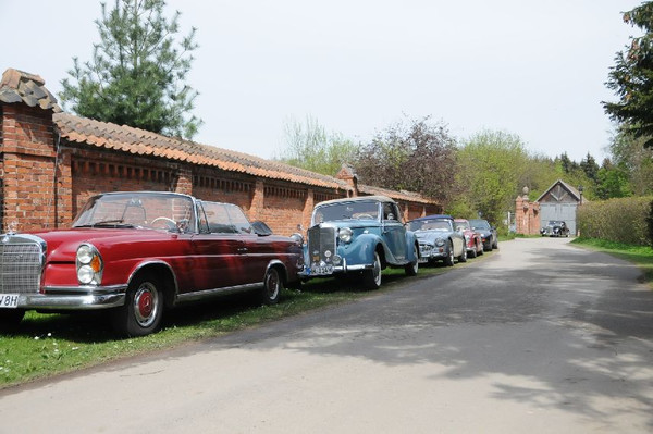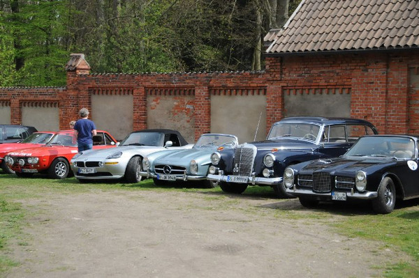 36 Fahrzeuge und 74 Personen hatten sich bis 8:30 Uhr im Herrenhaus eingefunden, welches eine großartige Kulisse für die Vor- und Nachkriegsfahrzeuge darstellte. Neben den Alfa Romeo, Austin-Healey, Bentley, Corvette, Facel-Vega, Lancia, Mercedes-Benz und Porsche, die regelmäßig an unseren Ausfahrten teilnehmen, beeindruckten besonders diejenigen Fahrzeuge, die erstmals an einer unserer Ausfahrten teilnahmen. So konnten zwei 'neue' Vorkriegs-Lagonda, ein Bentley Cabriolet mit Graber Karosserie aus den 50er Jahren und ein Maserati Quattroporte von 1985 in Ausgenschein genommen werden.