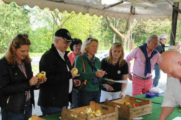 Sonderprüfungen gab es natürlich auch. Die monatsgenaue Schätzung der Erstzulassung eines 107ers war schon nicht ganz einfach. Wesentlich komplizierter war für alle 'Stadtmenschen' die richtige Namenszuordnung zu 4 unterschiedlichen Apfelsorten oder das Schälen eine Apfels, wobei das abgeschnittene Stück Schale möglichst lang sein sollte. Hier haben wir einen neuen inoffiziellen Meister. Steuerberater und Wirtschaftsprüfer Oliver W. schaffte hier ganze 95cm. Das ließ die Jungs und Mädels vom Land blass werden. Geschlagen von jemandem aus der Großstadt!