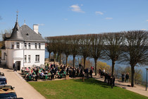 Am Ziel, dem Plöner See, angekommen, waren wir zu Gast in der Fielmann-Akademie. Das Schloss ist mit viel Liebe und sehr viel Geld restauriert worden. Zutritt haben eigentlich nur Seminarteilnehmer, aber für uns wurde eine Ausnahme gemacht. Auch eine Schlossbesichtigung unter sachkundiger Führung wurde angeboten und war absolut sehenswert. Das Buffet im Garten des Schlosses war von ausgezeichneter Bio-Qualität, z.T. von den Höfen des Herrn Fielmann. Wir haben es uns richtig gut gehen lassen.