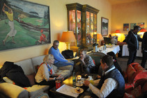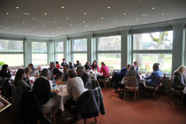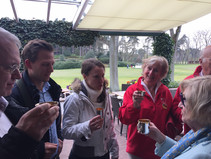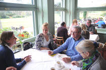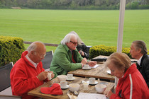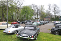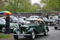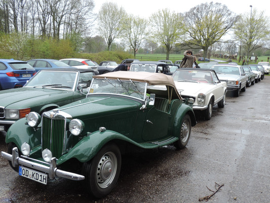 Ab 12:30 trafen die ersten Teams am Zwischenziel in der Bokel-Mühle ein. Aufenthaltsdauer: 60 Minuten. Tomatensuppe, Matjes und Roastbeef mit Bratkartoffeln und Rote Grütze waren die richtige Stärkung. Die Schlussetappe wurde von fast allen Teilnehmern pünktlich angetreten. Über die Haseldorfer Marsch, es regnete übrigens noch immer, ging es zurück in den Westen von Hamburg. Ziel war der Hamburger Golfclub Falkenstein in Blankenese. Die letzten Teilnehmer trafen hier gegen 16:30 ein. Bei frisch gebackenem Kuchen und einem wundervollen Ausblick auf einen der berühmtesten Golfplätze Deutschlands, war dies ein würdiger Abschluss für eine tolle Rallye.