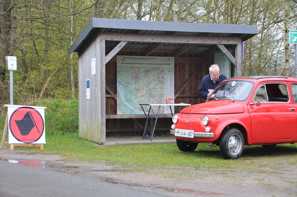 Es ging weiter in Richtung Norden. In Borstel-Hohenraden galt es, das Roadbook genau zu lesen. An einer Gabelung sollten sich die Teilnehmer rechts halten, nach 10m links und nach weiteren 10m wieder rechts abbiegen, wobei man dann auf die Straße zurück kam, die man auch befahren hätte, wenn man sich statt rechts gleich links gehalten hätte. Auf der linken Teilstrecke war ein 'Baumaffe' aufgestellt, der nicht notiert werden durfte, weil er sich nicht auf der richtigen Strecke befunden hat. Laut einigen Teilnehmern sollen sich an dieser Kreuzung filmreife Szenen abgespielt haben, die man prima an einem der Winter-Clubabende hätte zeigen können. Hinter Langeln endete das Roadbook mit den Worten 'Wertungsprüfung'.