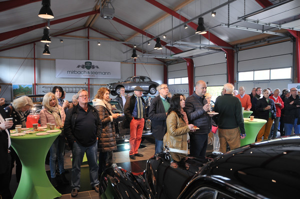 Nach der zweistündigen Mittagspause ging es auf die Schlussetappe. Ziel war der in Hamburg bekannte Oldtimerhändler Mirbach & Seemann, der seit einigen Monaten in Schenefeld ansässig ist. Wir wurden sehr herzlich mit Kaffee und Kuchen empfangen. In gepflegtem Ambiente war dies ein gelungener Abschluss der ersten offiziellen Ausfahrt 2017 unserer Landesgruppe. Ganz zum Schluss ließ sich die Sonne übrigens doch noch blicken!
