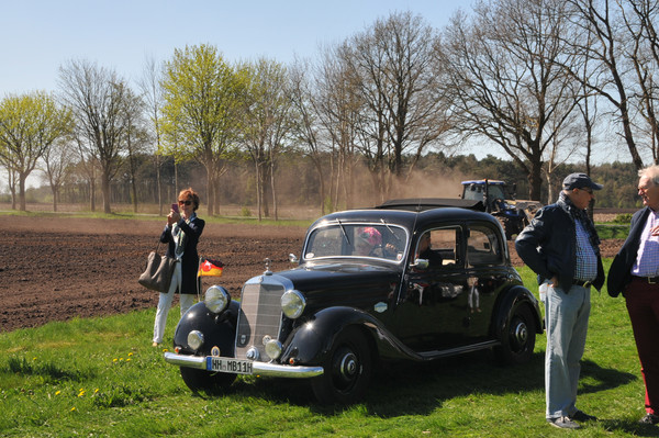 Mit 49 Fahrzeugen war die Zahl der Teilnehmer wieder erfreulich hoch. Treffpunkt war ein Gasthof in Jork, der bereits vor einigen Jahren Start einer Rallye war. Nach einem gemeinsamen Frühstück ging es los. Bei strahlend blauem Himmel und sommerlichen Temperaturen fuhren wir durch Europas größtes Obstanbaugebiet gen Norden.