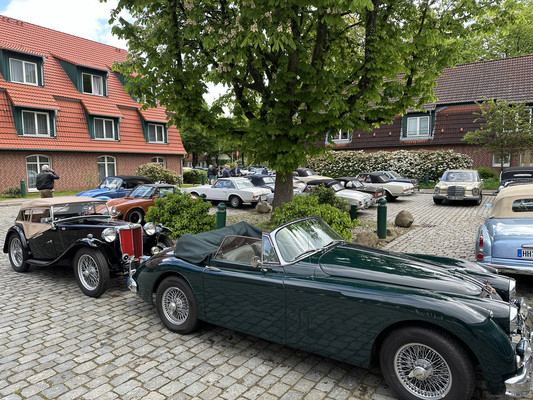 Nach der Mittagsrast im Antik-Hof Bissee ging es dann zurück in Richtung Hamburg. Auch auf diesem Teilabschnitt waren wieder mehrere Fragen zu beantworten. Ziel der Ausfahrt war das Hofcafe Büge in Hartenholm. Hartenholm kennt man als Hamburger eigentlich nur durch den gleichnamigen Flugplatz. Hier fand das berühmte Werner-Rennen statt. Der Flugplatz wurde aber auch wiederholt für internationalen Schmuggel der Länder Iran und Türkei genutzt, der schließlich zu seiner Schließung führte. Heute wird der Flugplatz nur noch von Fallschirmspringern genutzt.