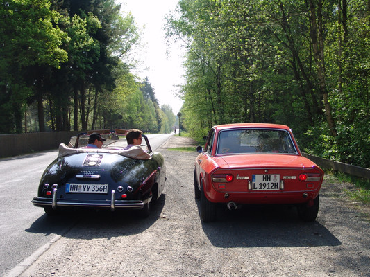 vorbeifahrenden Oldies der Marken Alfa Romeo, Austin Healey,