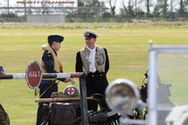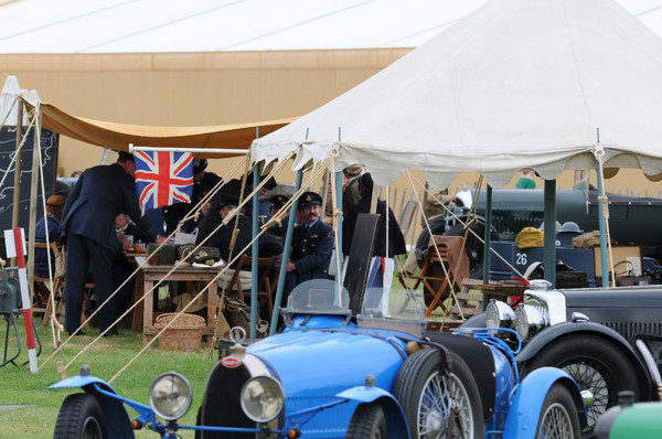 Damit ist in kurzen Worten das Goodwood Revival erklärt. Den Unterschied zu den meisten anderen Veranstaltungen macht aus, dass der Earl of March eine eigene Rennstrecke besitzt, in deren Mitte sich ein offizieller Flugplatz mit 2 Graslandebahnen befindet. Ferner darf man in England auf und über Privatgelände so ziemlich alles machen, was man möchte. In diesem Fall sind genügend Ländereien vorhanden.