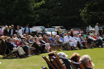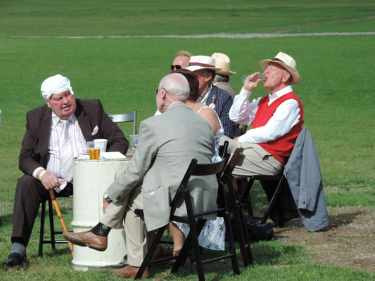 Auf Einladung unseres Mitglieds Rudolf E., der in diesem Jahr mit 3 Wagen in drei unterschiedlichen Rennen startete, begann das diesjährige Revival für einige von uns bereits am Donnerstag (12.09.) mit dem Cricket Spiel der Rennfahrer (u.a. Derek Bell). Auf einer von altem Baumbestand eingerahmten Rasenfläche mit dem Landsitz des Earl of March im Hintergrund fand das britischste aller Spiele statt: 'Cricket'.