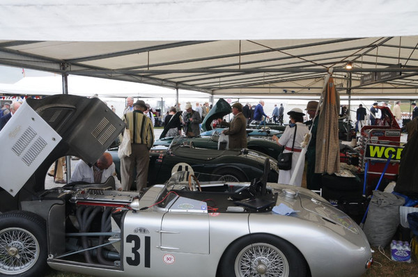 Um 14 Uhr erklärte Rudolf E. einigen von uns seine 3 Fahrzeuge (siehe oben) sowie den Ablauf des Goodwood Revivals aus Fahrersicht. Kannten wir das Event bisher nur aus Sicht der Besucher, sieht dies aus Sicht der Fahrer ganz anders aus. Themen wie Anmeldung zum Goodwood Revival, technische Abnahme, Einrichtung der Boxen, Testfahrten und Rennen laufen doch ein wenig anders ab, als man sich dies vorstellt.