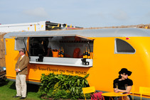 ihrem Wagen zu picknicken. Das natürlich stilecht mit Tisch und