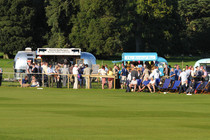 Wir trafen uns wie schon in den Vorjahren wieder am Donnerstag-Nachmittag beim Cricket vor dem Goodwood House. Bei herrlichem Wetter und sommerlichen Temperaturen konnten wir Fahrern wie Derek Bell (fuhr einen 4,5 Litre Bentley Blower in der Brooklands Trophy) zusehen und die Fahrzeuge der Besucher vor traumhafter Kulisse bewundern. Stilecht wurde Pimm´s getrunken.