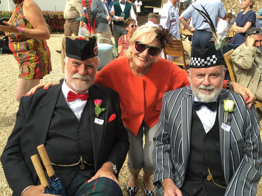 Überraschenderweise 'verpassten' wir jeden der erwarteten Staus bei der Anfahrt zur Veranstaltung, die traditionell bereits am Donnerstag mit einem Cricketspiel auf der großen Wiese vor dem Schloß des Earl of March eingeläutet wird. Schon hierher kommen viele Besucher mit seltenen und schönen Autos, die es sich anzuschauen lohnt. Nach dem Ende des eher langweiligen Spiels - die Regeln sind selbst bei konzentriertem Zuschauen auch nicht andeutungsweise erkennbar - zeigt als Highlight der Pilot einer Spitfire seine Kunstflugfähigkeiten, früher auf Höhe der Baumwipfel und darunter, heute aus Sicherheitsgründen (leider) in größerer Entfernung. Mit einem Gläschen 'PIMM‘S No. 1' (leicht bitterer kräutrig-würziger Likör auf Gin Basis) läßt sich das Warten in den Liegestühlen oder beim Klönen mit alten und neuen Bekannten auf die Flugshow indes recht gut überbrücken.