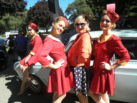 Auch zwischen den mindestens 3000 Autos bis Baujahr 1966 der Besucher, die auf einer privilegierten Parkfläche stehen dürfen, sind immer wieder Marken zu sehen, von denen man noch nie etwas gehört, geschweige denn, diese gesehen hat. Es gibt Menschen, die hier bei einem Picknick vor oder hinter ihrem Auto den ganzen Tag verbringen, so dass selbst das Schlendern zwischen den endlosen Autoreihen etwas Einmaliges ist.