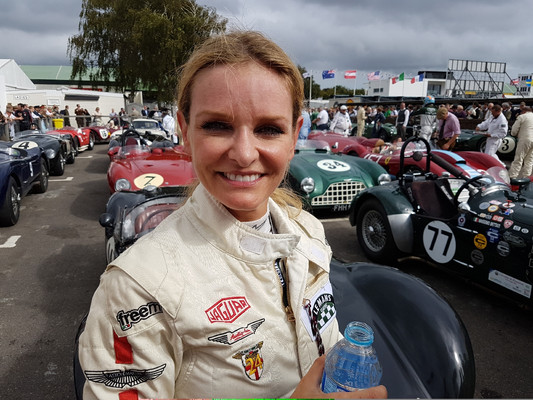 Unsere Katarina K. fährt inzwischen in der ersten Liga mit. Mit einem Cooper-Jaguar T33 von 1954 fuhr sie in der 'Freddie March Memorial Trophy' (20 Minuten Rennen für Sportwagen, die von 1952 bis 1955 fuhren) von Platz 6 in der Qualifikation (29 Starter, 5 Ausfälle) startend beim Regenrennen (24 Starter, 4 Ausfälle) in echtem Hamburger 'Schietwetter' auf Platz 11. Sie hatte indes das Glück, im Rennen um die 'Kinrara Trophy' (60 Minuten 2-Fahrer Rennen für GT Autos mit geschlossenem Cockpit bis Baujahr 1962) mit Rob Hall als Co-Driver in einem Jaguar E-type von 1961 auch bei Sonnenschein zu fahren.
