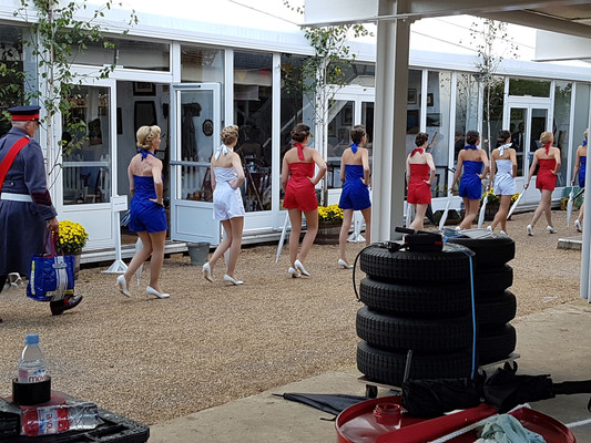 Das Wetter war so scheußlich wie noch nie seit dem von mir erstmals im Jahr 1999 erlebten regnerischen 2. 'Revival International Car Race Meeting'. Damals schrieb ich, 'von den kräftigen Regenschauern ließ sich niemand ernsthaft beeindrucken; allenfalls tauschten die Damen die Pumps mit Gummistiefeln'. Statt Sturzflüge bei den 'air displays' gab es heftigste Sturzregen dieses Jahr. Daher standen viele Füße von Anfang an in Gummistiefeln, weil die Schuhe bereits beim Weg von den Parkflächen auf den durchweichten Wiesen bis zum Eingang ruiniert waren und viele Autos am Ende des Tages mit einem Traktor aus dem Schlamm der Parkflächen gezogen werden mussten.