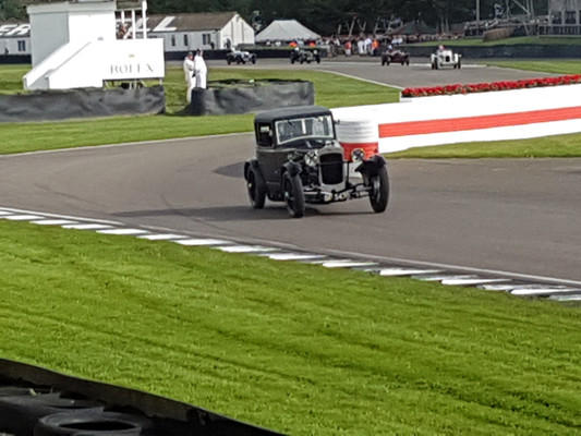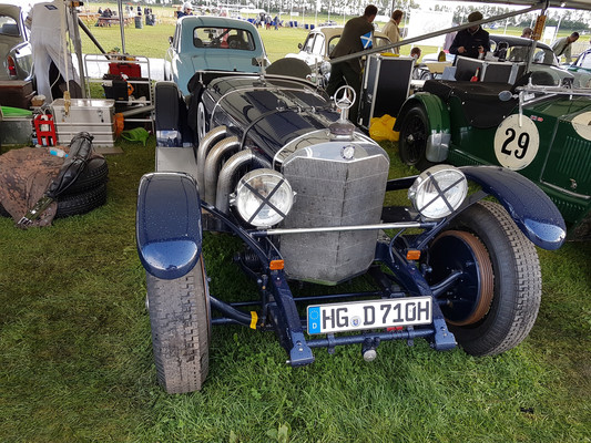 Höhepunkt sind immer wieder die Rennen der Boliden AC Cobra, Ford GT 40 und Konsorten der 60iger Jahre, zumal wenn diese von den Heißspornen Frank Stipler, Tom Kristensen und anderen Rennfahrern pilotiert werden. Im Rennen der Vorkriegsboliden der Baujahre 1925-1939 mit SB Kern und SB Dressel in ihren Kompressor Mercedes stiehlt allerdings 'The Owlett' = 'Das Eulenjunge', ein Frazer Nash Saloon von 1928 mit einem 1,5 Liter 4-Zylinder Motor und die spektakuläre Fahrweise seines Fahrers allen die Show. Er ist der absolute Publikumsliebling und läßt die Bentley Blower und Konsorten so langsam aussehen, dass man gar nicht glauben kann, dass an dem 1,5 Liter Motörchen mit Sidepipes wirklich alles original ist. Egal, es brachte wieder total viel Spaß, die urige Karosserie auf den schmalen Reifen um die Schikane (Weather/Track: Cloudy/Dry) driften zu sehen.