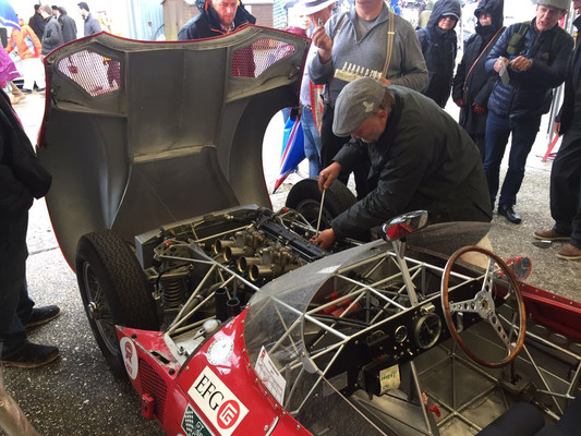 Leider hatten unsere beiden 'Competitors' das Pech, bei ihren Rennen der Rennsportwagen von 1952-1955 bzw. der Heckmotor Formel Junior Wagen mit Trommelbremse von 1958-1962 im Regen zu fahren.