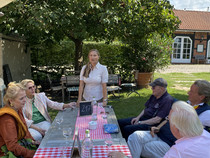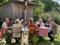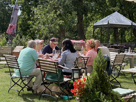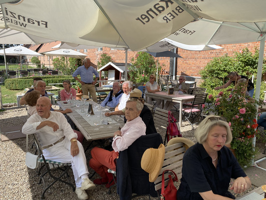 Nach einem lockeren Stelldichein bei den Oldies ging es in den traumhaft schönen Garten, wo uns die Sonne verwöhnte. Die Plätze unter den Sonnenschirmen waren umgehend belegt.