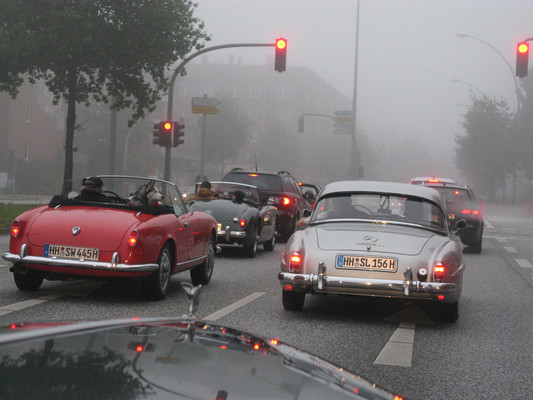 Für die 37 Teams der Hammonia hatte SB Dr. Malte K. eine Fahrt ins Wendland vorbereitet, eine wegen ihrer ehemaligen Zonenrandlage weitgehend unberührte Landschaft von ganz besonderem Reiz. Beim Start begann sich die Sonne durchzusetzen, die Cabrios öffneten sich und dieser Tag sollte dann einer der schönsten im Monat September werden.