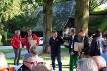 Vom Start aus machte man sich auf entlang der Harburger Berge in die Heide. Jesteburg, Maschen, Garlstorf und Egestorf lagen auf unserem Weg. Im Landgasthof 'Zur Eiche' in Ollsen wurde die Mittagsrast eingelegt. Es gab ein zünftiges 'Heidjer-Buffet', darauf Leckerein aus der Lüneburger Heide und als kleine Sensation unterhielt die engagierte Kapelle die Teilnehmer mit Live Musik.
