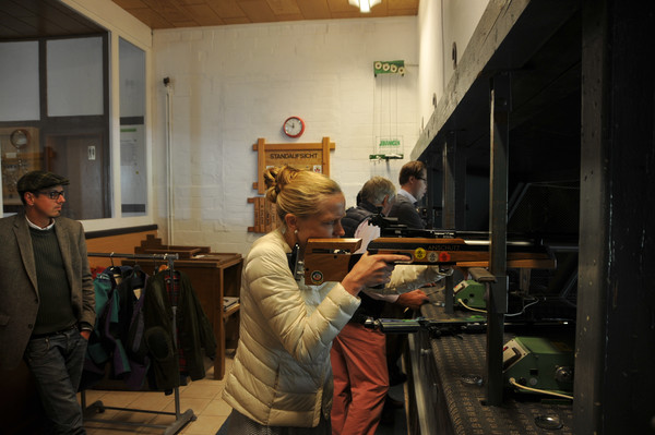 Anhand eines reich bebilderten Roadbooks ging es Richtung Bergedorf und Schwarzenbeck. Entlang des Weges mussten viele kuriose Dinge gefunden werden, die man nicht mit Hilfe seines Smartphones und Google herausbekommen konnte. Neben Geschicklichkeitsprüfungen war Zielsicherheit im Schützenhaus in Lütau angesagt. Nico S., Gast der Hammonia, wurde hierbei klar Schützenkönig. Die Fahrt ging weiter über schöne Alleen und sanft geschwungene Landstraßen Richtung Kollow, Gützow, Büchen, Gudow und Zarrentin. Ziel der Reise war das Gutshaus der Grafen Bernstorff auf der Stintenburginsel.