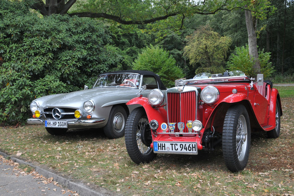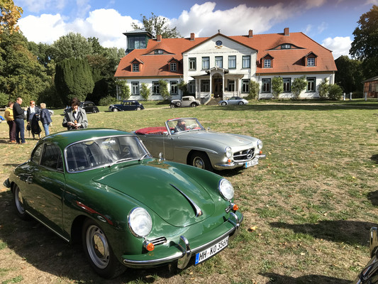 Zurück ging es immer geradeaus mit 14 mal Abbiegen (auf 79km) direkt zum Forsthaus Friedrichsruh in Aumühle. Leider gab es während der Rallye eine abgerissene Auspuffanlage zu beklagen, die aber dafür sorgte, dass ein 190 SL endlich einmal wie ein Sportwagen klang.
