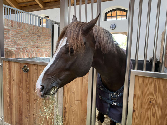 Im Bereich der Zucht von Dressurpferden gilt dieses als eine der besten Adressen weltweit. Wenn man es nicht gesehen hätte, würde man nicht vermuten, dass hier Pferde beheimatet sind. Das Haupthaus mit der Reithalle wirkt eher wie das Clubhaus eines elitären Golf-Clubs. 99% der Oldtimer in Deutschland dürften Stellplätze haben, die von der Einrichtung her auch nicht einmal annäherungsweise so schön gestaltet sind. Quasi ein 5 Sterne Plus Hotel für Pferde.