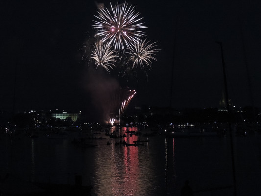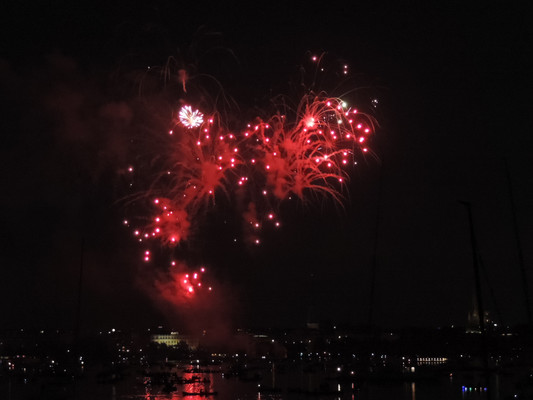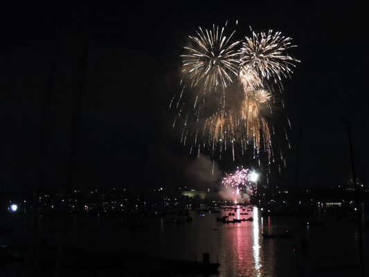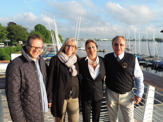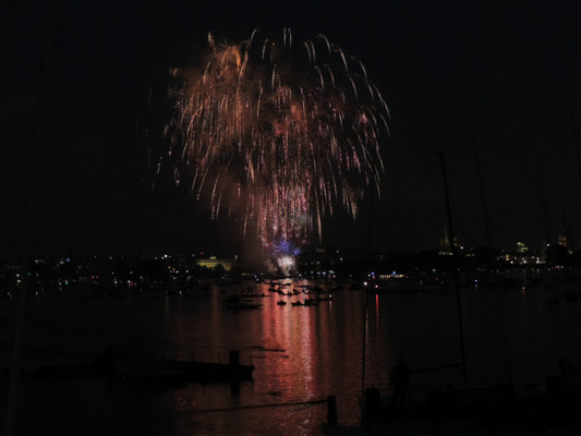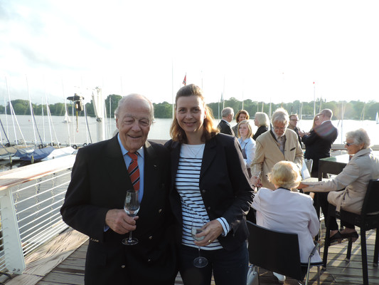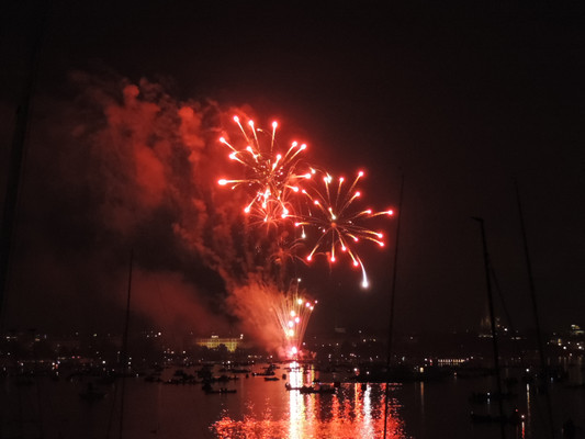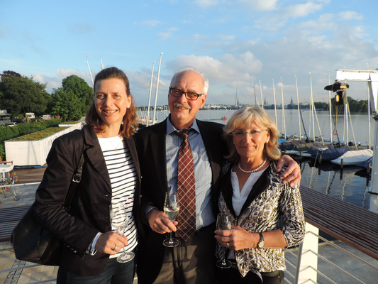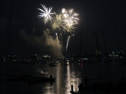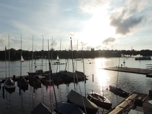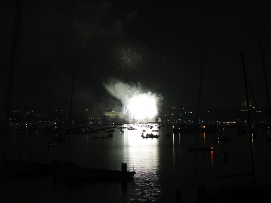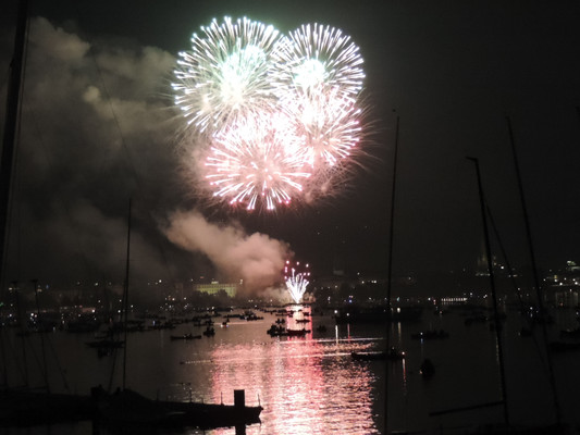 Ein köstliches 3 Gänge Menü und anregende Gespräche ließen die Zeit bis zum Feuerwerk im Nu vergehen. Pünktlich um 22.30 Uhr (die Japaner haben sich schon einiges von den Deutschen abgeschaut) startete das halbstündige Feuerwerk. Imposante Glitterregen, wunderschöne Chrysanthemen und rote Herzen wurden in den Himmel gezaubert. Die Außenalster war voller Boote und auch auf den Wanderwegen rund um die Alster standen die staunenden Zuschauer. Ein wirklich schönes Geschenk der Japaner an unsere Hansestadt.