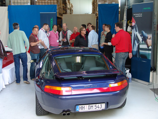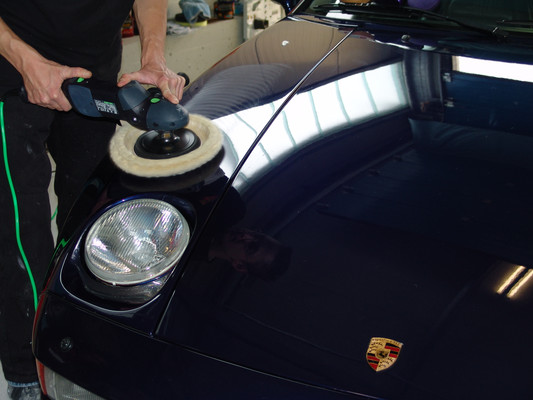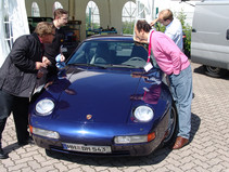 An einem Porsche 928 GTS wurden sämtliche Schritte von der richtigen Reinigung, über Anschleifen des Lacks, das Einwachsen bis zur Politur gezeigt. Nachdem der Wagen fertig war, sagte der Besitzer, dass er diesen jetzt nicht mehr fahren werde.
