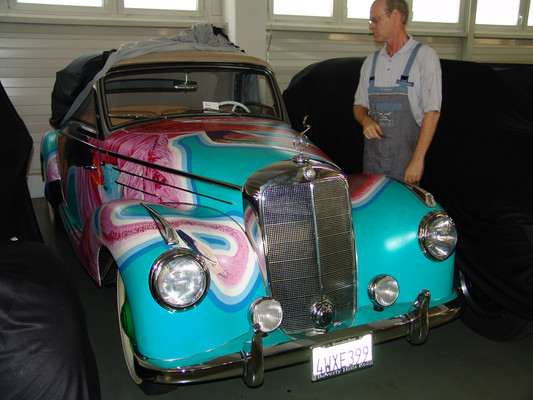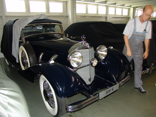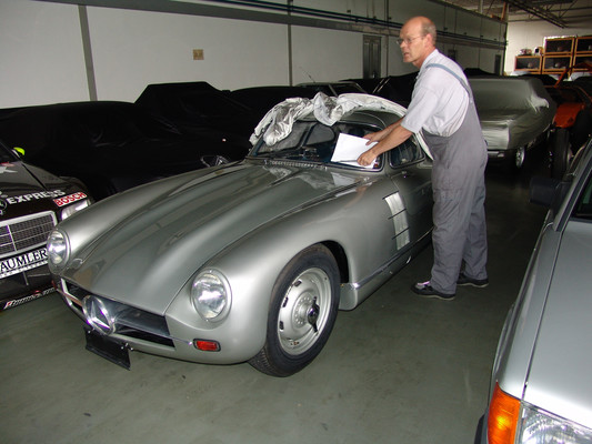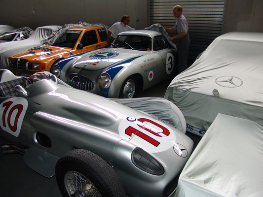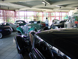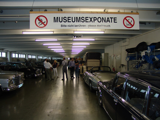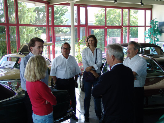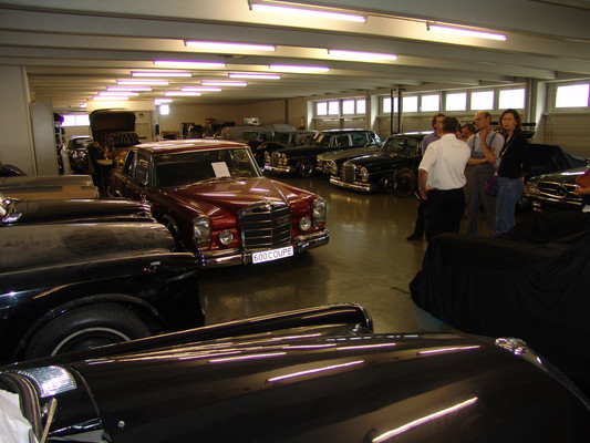 Der nicht besonders große Showroom präsentierte sich uns mit äußerst seltenen und in hervorragendem Zustand befindlichen Fahrzeugen (300SL (Roadster+Flügeltürer, 500K, SL 500 (R107, mit nur 2.000km), 280SE 3,5 Cabrio (W111) und 2 McLaren SLR).