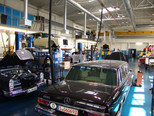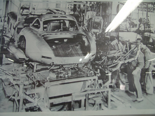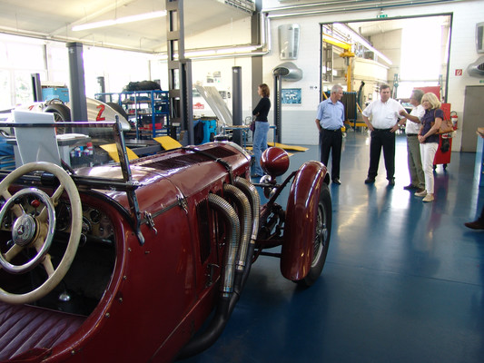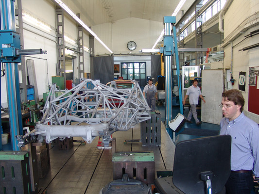 Die eigentliche Werksführung begann mit den Manufakturbereichen 'Interieur' und 'Exterieur'. Jedes Fahrzeug wird in diesem Bereich von einem oder maximal 2 Technikern bearbeitet. Von hier ging es dann in die Fertigung der 5,5 Liter, 6,3 Liter und SLR Motoren. Es gilt stets der Grundatz: 'Ein Mann ein Motor', d.h., dass jedes Aggregat von einer Person allein gefertigt und zum Schluss mit dessen Namen versehen wird.