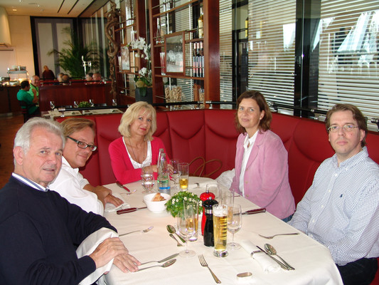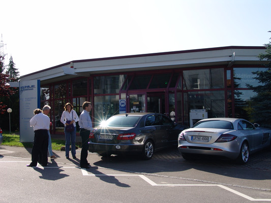 Der Abend endete mit einem gemeinsamen Essen nahe des Schlosses Solitude. Neben den verbliebenen Teilnehmern der Präsentation bei AMG gesellten sich noch Eberhard Mahle, ein bekannter Rennfahrer aus den 50er und 60er Jahren (Abarth, Alfa Romeo, BMW, Borgward, DKW, Fiat, Ford, Glas, Mercedes, NSU, Porsche, Volvo und VW), der u.a. mit Karl Kling und Hans Herrmann Rennen bestritt, und Klaus Kienle zu uns, der uns für den kommenden Morgen zu einer Besichtigung seiner Firma einlud.