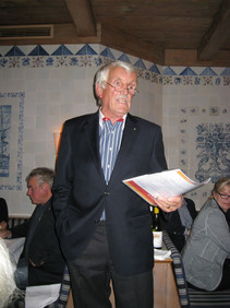Unser Präsident hatte zudem die große Freude, unter Überreichung der ASC Insignien unsere neuen Mitglieder Claudia H. und Thomas S. zu begrüßen. Beide zeichnen sich durch eine Besonderheit aus. SB S. ist bereits mit viel Elan dabei, unsere nächste Frühjahrsausfahrt zu organisieren, was für einen 'Novizen' ein großartiger Einstand ist. Und zu Claudia H. gibt es etwas Außergewöhnliches: Als die Landesgruppe, aus der wir hervorgegangen sind, im Jahr 1993 nach langer Diskussion beschlossen hatte, Damen aufzunehmen und eine entsprechende Satzung formulieren ließ, reichte sie sogleich ihren Aufnahmeantrag ein. Die seinerzeit für die Aufnahme Verantwortlichten goutierten das trotz Mitgliederbeschluss und Satzung jedoch nicht und ließen den Antrag in einer Schublade verschwinden. So freuen wir uns ganz besonders, unsere neue Schnauferldame nach 20 Jahren endlich als ASC Mitglied in unseren Reihen zu haben.