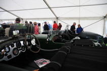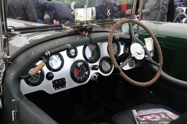Viele Fahrzeuge wiesen eine wunderbare Patina auf, die zeigte, dass diese regelmäßig 'gefahren' werden. Bei den diversen Bentleys, die auf den ersten Blick toll aussahen, liegt die Vermutung nahe, dass einige dieser Fahrzeuge vor dem Krieg noch gar nicht existierten bzw. höchstens einige Teile davon. Echte Cockpits historischer Bentley Rennwagen erinnern in Ihrem Aufbau an eine Kombination aus Flugzeugcockpits der 30 bis 60er Jahre und dem Führerstand einer Dampflok. Hier waren vereinzelt Bentley Cockpits und Instrumente zu sehen, die auf den Ziffernblättern ein aufgedrucktes '1000 Miglia' Logo auswiesen. Die ganze Instrumententafel klinisch rein auf gebürstetem Aluminium, quasi werksneu. Der Schriftzug 'Stanley Mann Racing' lässt den Ursprung einiger dieser Fahrzeuge erahnen. Diese Fahrzeuge sind zwar weit entfernt von einem FIVA-Pass der Klasse A oder B, dennoch sind auch diese immer wieder beeindruckend und schön anzusehen.