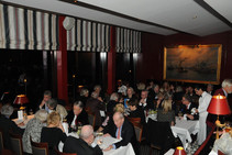Begrüßt wurde jeder Gast von unserem Präsidenten Jürgen S. und seiner Frau mit einem Apéritif. Die Küche verzückte alle Gäste mit Variationen von Fisch oder Ente. Den ganzen Abend über konnte man die niemals ruhenden Aktivitäten im Hamburger Hafen beobachten. Ob Van Carrier, Schlepper oder Ozeanriesen, vor den Fenstern des Fischereihafen Restaurants war immer etwas los.