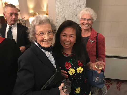 Nachdem sich alle ins Obergeschoss an die festlich gedeckten Tafeln begeben hatten, wurde uns ein gutes Menü serviert. Wer es nicht weiß: Das Essen kommt im Übersee Club seit jeher vom Atlantic Hotel auf der anderen Seite der Alster und das freundliche Personal war ausschließlich für uns engagiert worden. Die Pausen zwischen den Gängen füllte unser Präsident mit einem heiklen Weihnachtsgedicht von Loriot, das seinerzeit sogar zum Thema im Bundestag geworden war. Etwas Harmloseres trugen noch der Berichterstatter und SB Peter B. vor. Getanzt wurde anschließend zwar nicht. Viele blieben aber an der Bar im Erdgeschoß hängen, so dass die Bedienungen noch bis nach Mitternacht aushalten mußten.