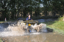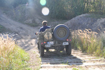 Der Spaßfaktor stieg von Minute zu Minute. Die zunächst skeptischen Blicke der anderen Teilnehmer wichen immer mehr der respektvollen Bewunderung der 74 Jahre alten Technik. Die anspruchsvollsten Übungen waren das Befahren eines 50cm tiefen Wasserhindernisses mit steilen steinigen Ein- und Ausfahrten sowie ein felsiger Hang mit 30° Steigung. Letzterer durfte bauartbedingt nur vom G-Modell, dem Lada, dem Jeep Grand Cherokee und dem Willys befahren werden. Alle 4 Fahrzeuge haben dieses Hindernis erklommen, wobei der Willys sich seinen Weg nicht bahnen musste, sondern mit Leichtigkeit den direkten Weg nach oben nahm.