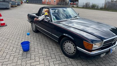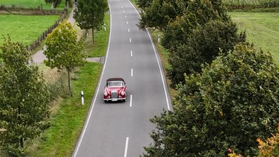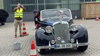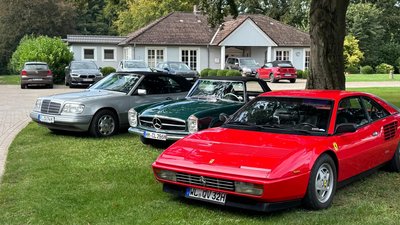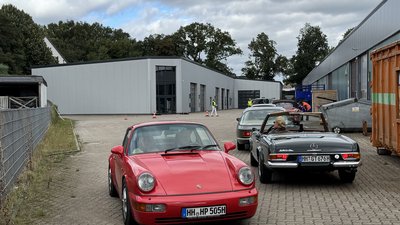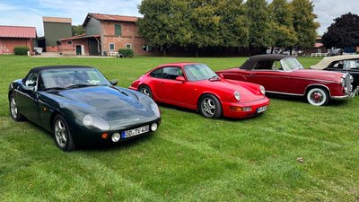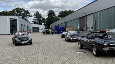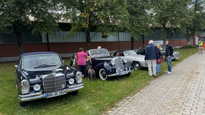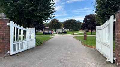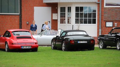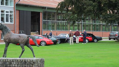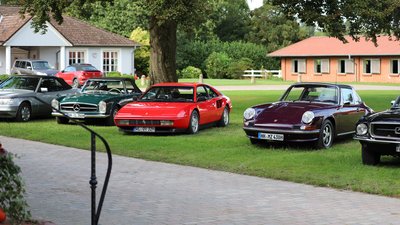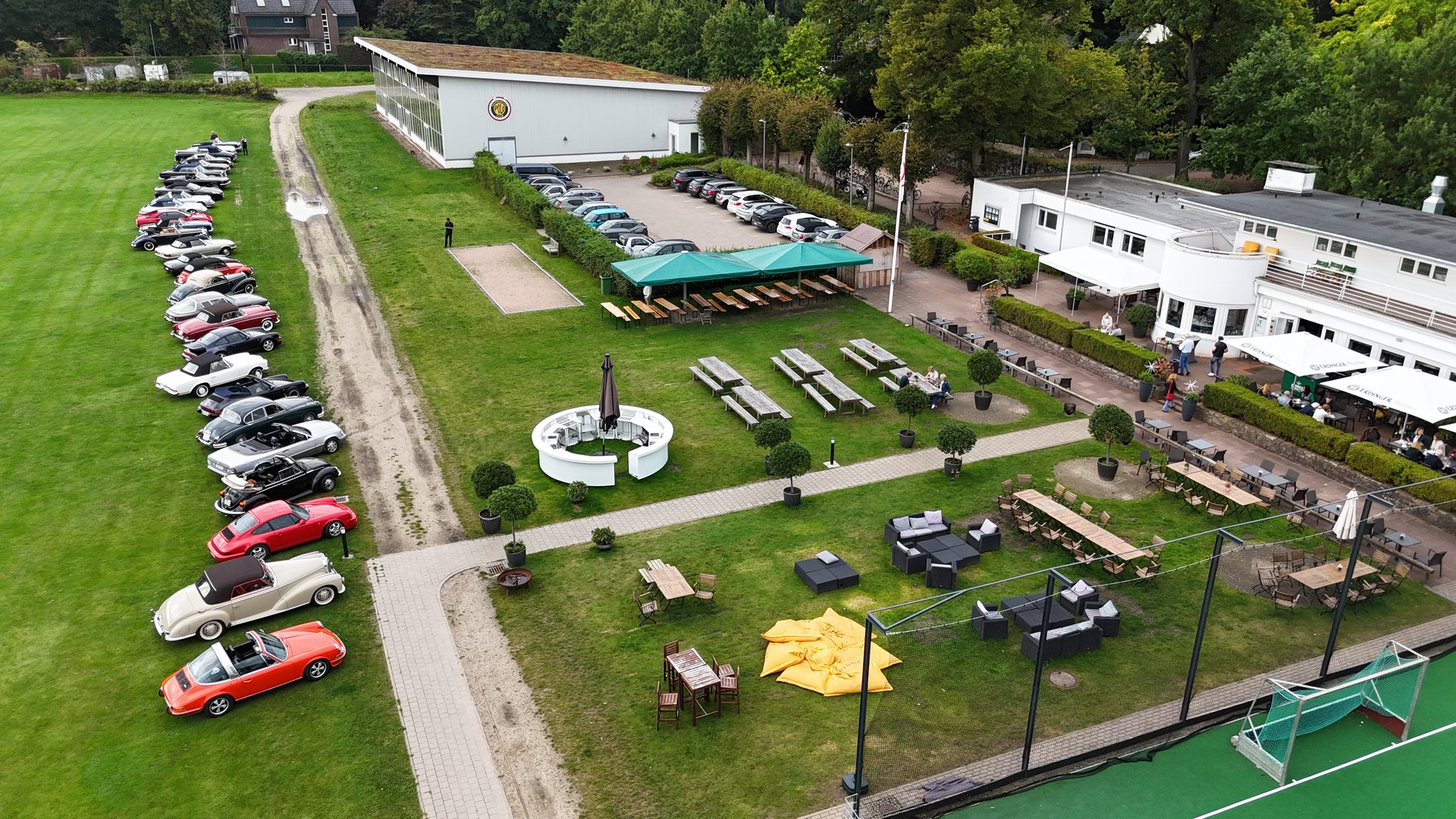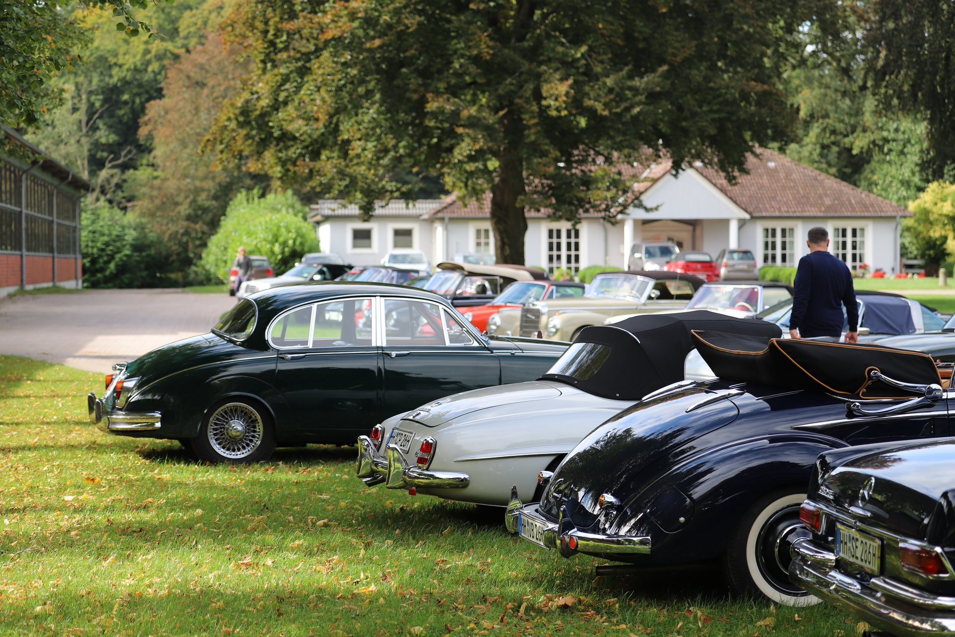 Das Mittagsziel war das wunderschöne Gestüt Gut Tangstedt, welches uns mit seiner repräsentativen Einfahrt willkommen hieß. Für Schaulustige wurden die Oldtimer auf der großen Rasenfläche platziert, ein toller Anblick.
