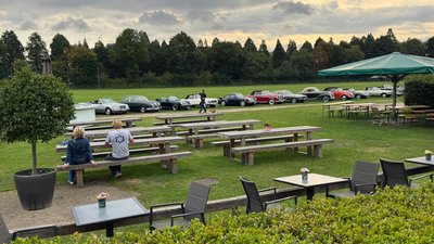 Ziel der zweiten Etappe über 78km war der Golfclub Hamburg-Holm. Während das Orga-Team die Ergebnisse der Wertungsprüfungen und Bordkarten auswertete konnte jeder das große Kuchenbuffet genießen und Benzingespräche führen.